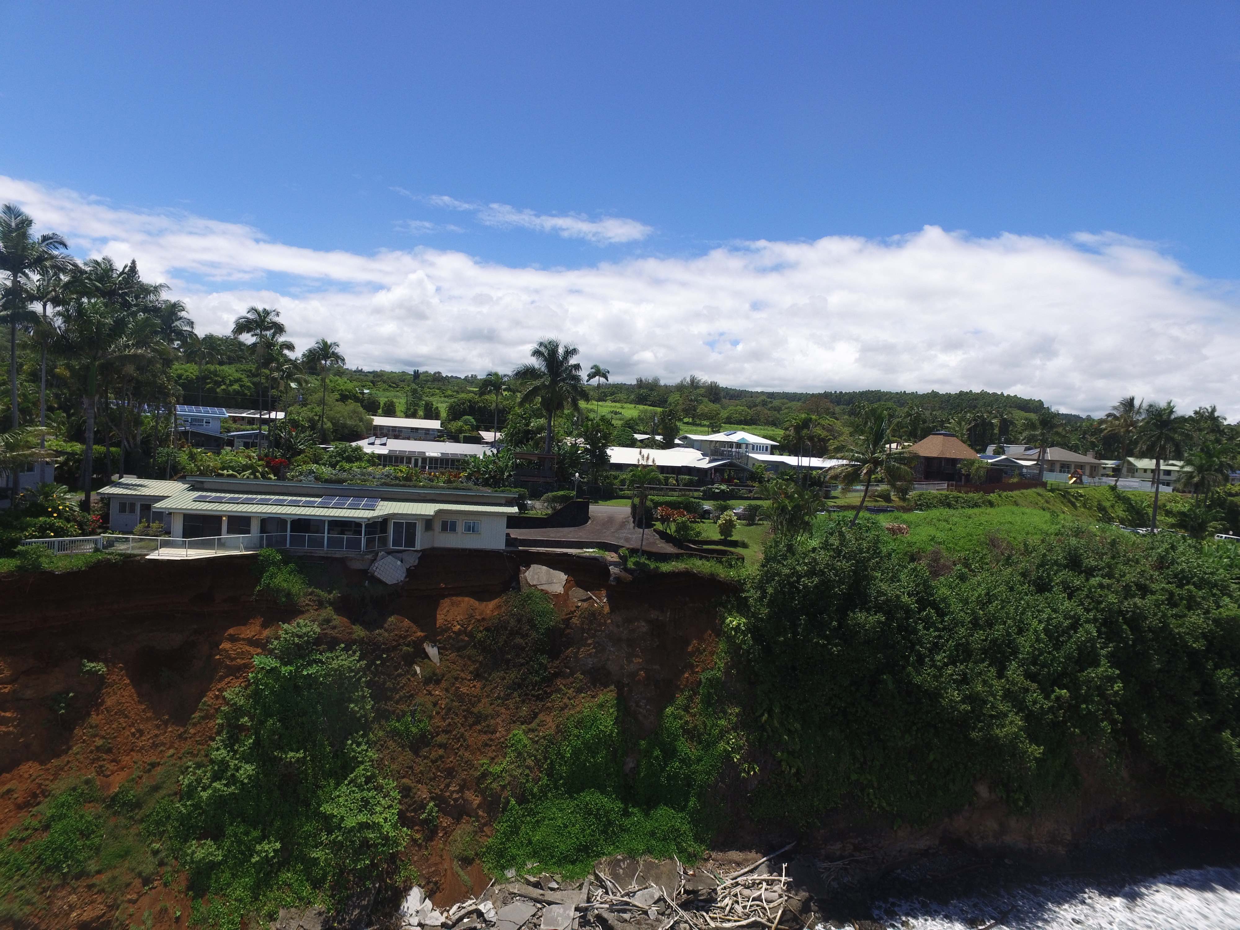 She pointed out the department’s “serious concerns” over the project: “This cliff has been eroding for some time, causing the house to rest precariously over the pali. Recent erosion of the pali, including the sections that were supposed to have been reinforced structurally, have resulted in the loss of several feet of cliff. We have not been provided with information regarding the geology of the cliff, what its rate of erosion is, how the wave action below impacts the integrity of the pali, how the cliff geology will act under the engineered solutions (meaning, will the pali break off again under the new stress of drilling and anchoring into it), etc. … We would not want to approve a solution that is not safe.”
