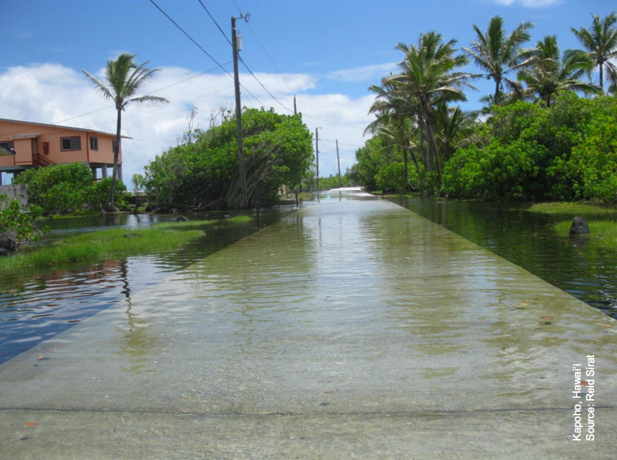 Days later, the Department of Land and Natural Resources issued a press release linking to the new Sea Level Rise Vulnerability and Adaptation Report drafted by the Hawai‘i Interagency Climate Adaptation Committee (ICAC), which predicts that more than 6,500 structures in Hawai‘i would be compromised or lost with a rise in sea level of 3.2 feet, displacing more than 20,000 residents. The value of projected flooded structures and lands amounts to more than $19 billion statewide, the report stated.
