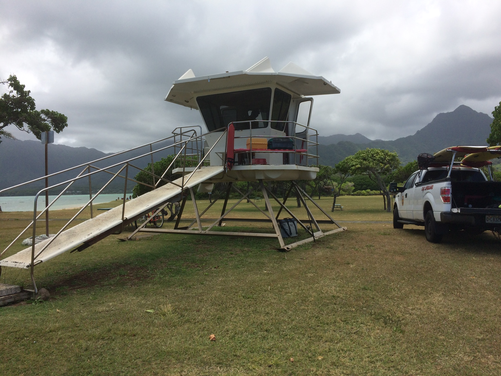 As a first step, his department has devised a prototype design for mobile lifeguard stands. Waves have already stolen much of Kualoa Beach Park on the windward side of O`ahu over the years, and a portable stand would likely be necessary to continue to support lifeguards there, as well as other beaches. “The tower at Kailua, we’ve moved it three times. At Sunset Beach, three times. The ones at Waikiki are beginning to fail,” he continued.