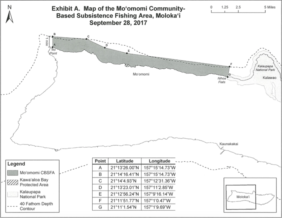 At the board’s meeting, the Department of Land and Natural Resources’ (DLNR) Division of Aquatic Resources (DAR) described the collaborative process that led to the creation of the proposed rules to establish a Community-Based Subsistence Fishing Area (CBSFA) at Mo‘omomi. The Hui had submitted an initial proposal to the department last year, and DAR later held a number of scoping meetings on the island before bringing a final draft of the rules to the board for permission to take them to public hearings. The proposed CBSFA would span an 18-mile stretch of ocean from the northwestern tip of the island at ‘Ilio Point, past Mo‘omomi, to Nihoa Flats, just before Kalaupapa National Park, and extend a mile out to sea.