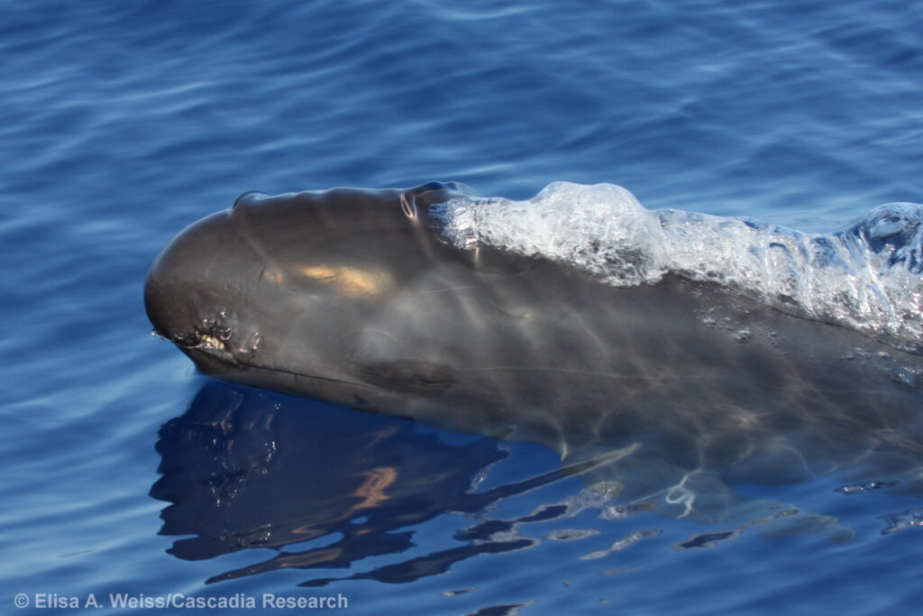 A Hawaiian false killer whale with scarring from an interaction with fishing gear.