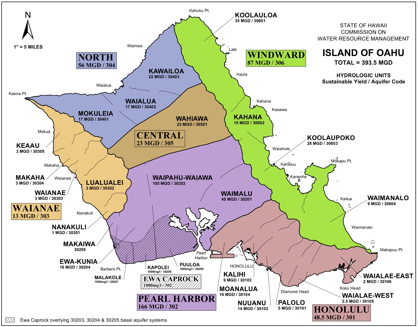 Nānākuli’s sustainable yield is 1 million gallons a day; the other four aquifers each have a sustainable yield of 3 mgd, for a total of 13 mgd for the entire sector.